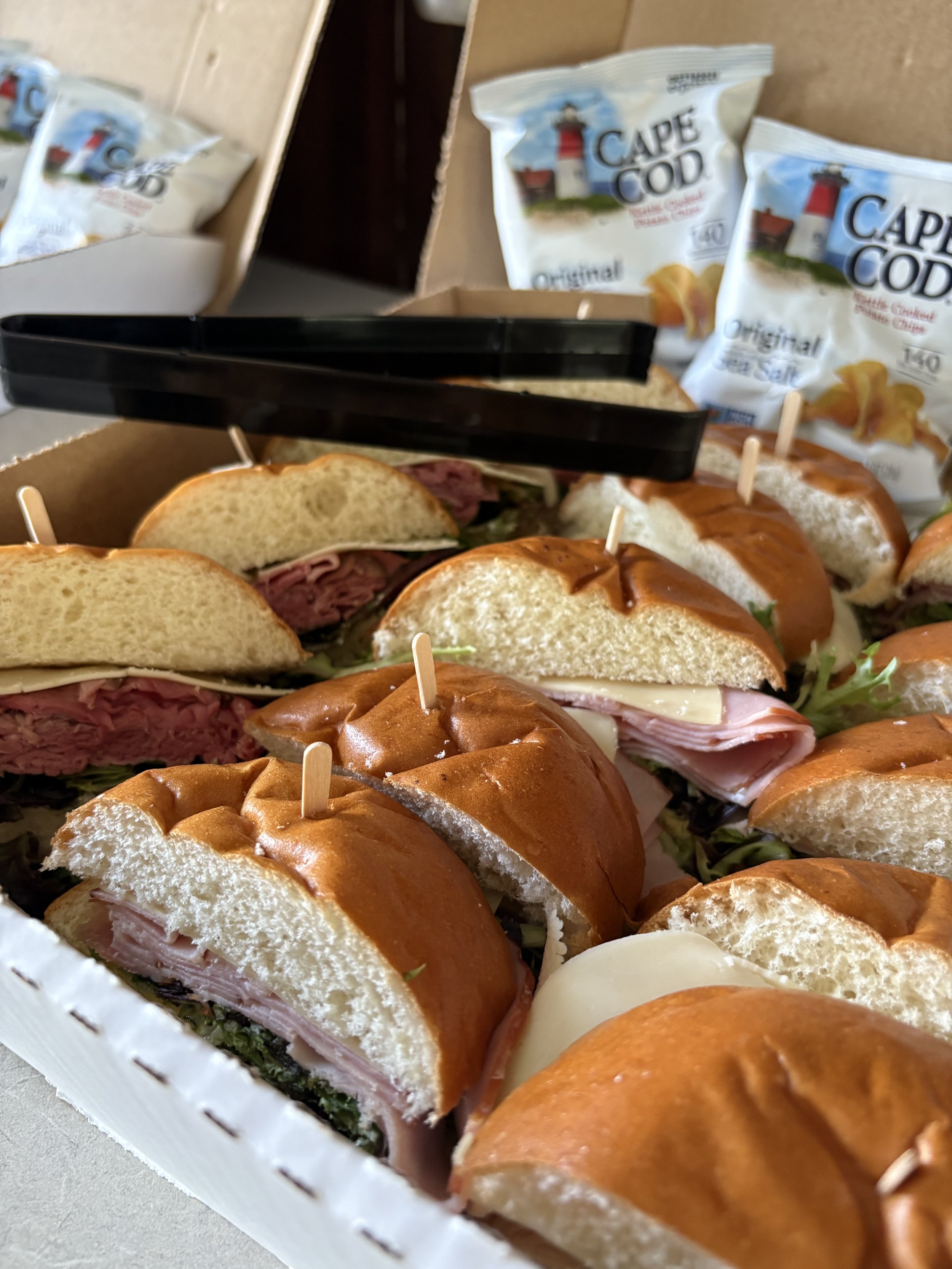 ~ American Sandwich Luncheon ~ Selection of Fine Deli Meats and Salads all served on Fresh Deli Breads and Wraps, Mixed Greens Salad with Balsamic Vinaigrette, Caesar Pasta Salad with Parmesan Cheese, Selection of Bagged Chips, House Baked Cookie Selection ~ $15 per person